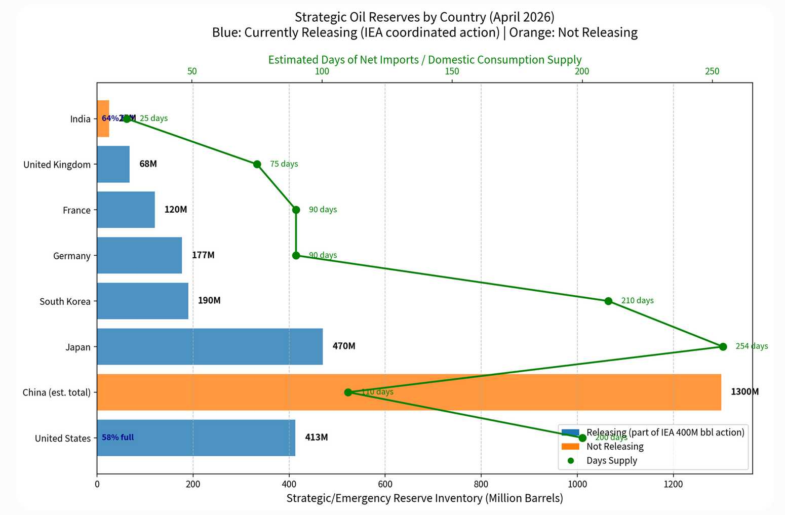 Here's the current state of strategic oil reserves by country. What if the Strait of Hormuz doesn't open for months?